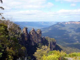 Ici, à Katoomba, le principal attrait est la Jamison Valley avec 3 magnifiques formations rocheuses appelées les "Three Sisters"
