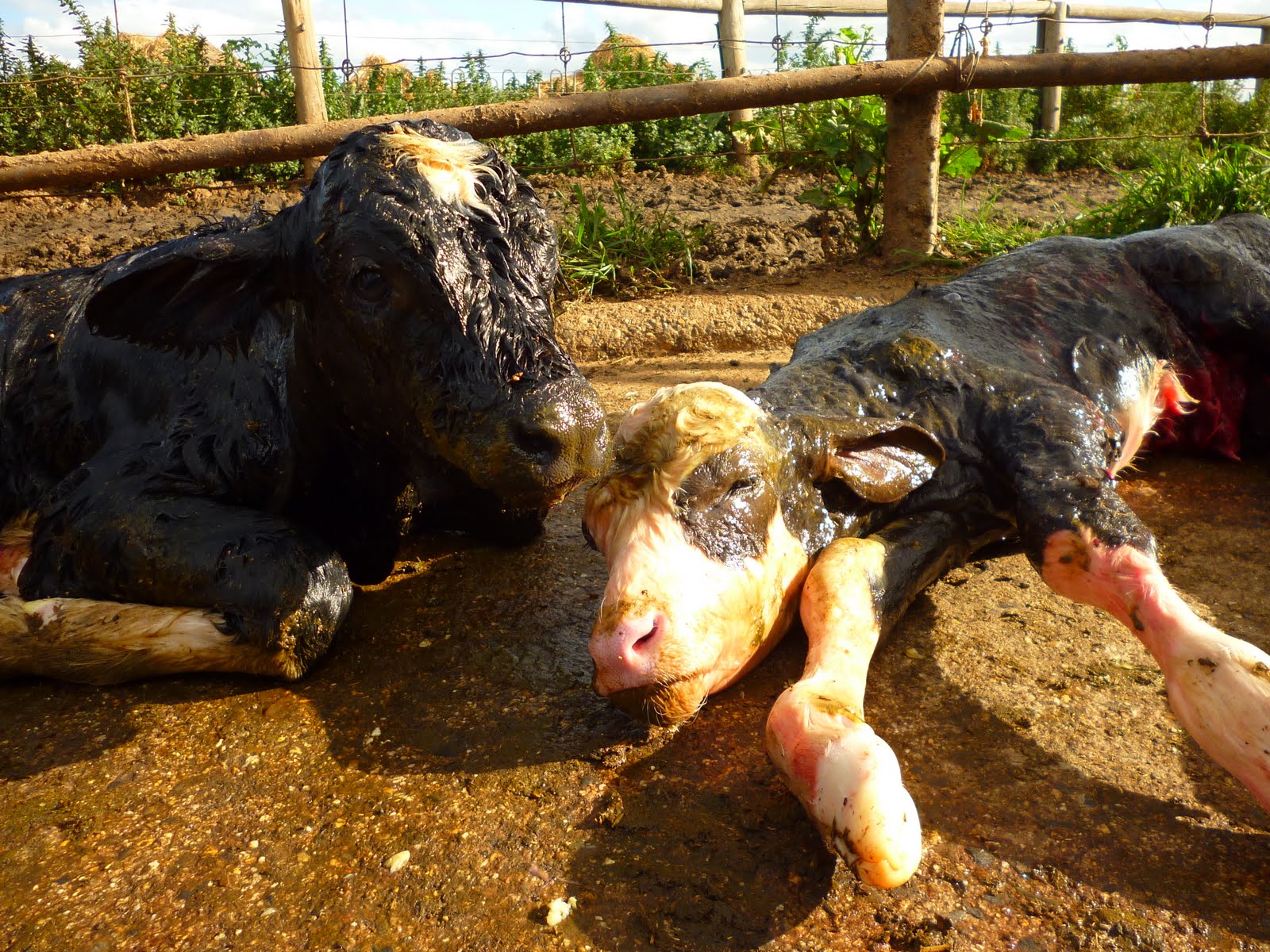 Parfois on peut aussi assister à la naissance d'un petit veau... Voir 2! Lors de mon premier jour j'ai assisté Viktor pour la naissance d'on pensait, un seul veau. Jusqu'à ce qu'une heure après une autre paire de pattes fit son apparition! Un deuxième veau! Apparement phénomène rare... Un mâle et une femelle? Je les ai baptisés : Vitalli et Viktoria!