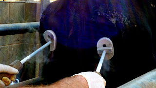- la journée "on coupe les cornes des vaches" qui fut la même journée que la précédente. Normalement elles sont coupées chez le veau dès qu'elles apparaissent. Mais parfois, et je ne sais pas comment, on se retrouve avec des vaches adultes arborant de belles cornes. Et là, mon hôte, Julie me dit "Si déjà t'aime pas trop qu'on mette de l'azote liquide sur les vaches, tu vas voir ce que c'est quand on coupe les cornes!". Et bien je ne fus pas déçue... J'éviterai d'ailleurs de relater cet épisode traumatisant dans ce blog, mais ça me fait beaucoup réfléchir sur la condition animale. Et encore, ici à la ferme, nous ne faisons que traire les vaches, heureusement que je ne fais pas du wwoofing dans un abattoir. "Brigitte, sors de ce corps!" Me voilà plus Bridget Bardot que Bridget Jones. Espérons juste que je vieillisse mieux!